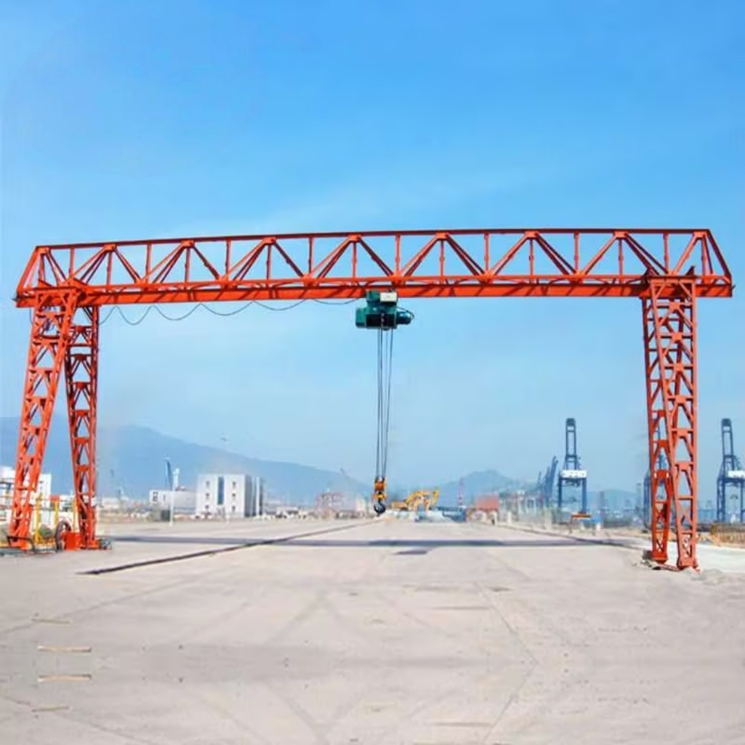 MHh型電動(dòng)葫蘆門式起重機(jī)(俗稱“花架龍門吊”)是一種輕量化、中小起重能力的通用型起重機(jī)。它屬于橋式起重機(jī)的一種變形,但其主梁通過(guò)支腿支撐在地面軌道上運(yùn)行,構(gòu)成一個(gè)“門”形框架,因此得名“門式起重機(jī)”。