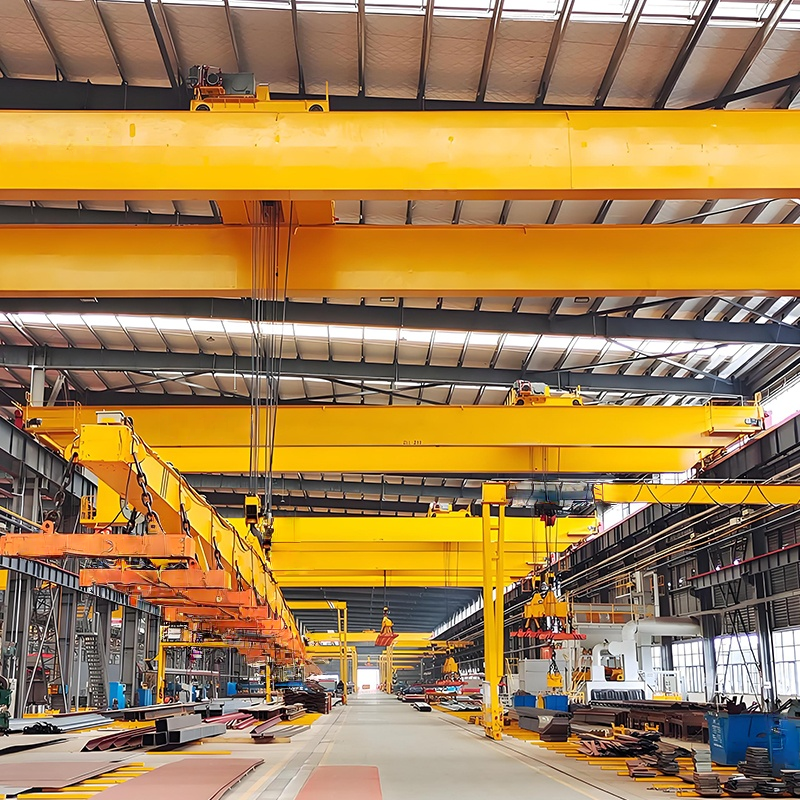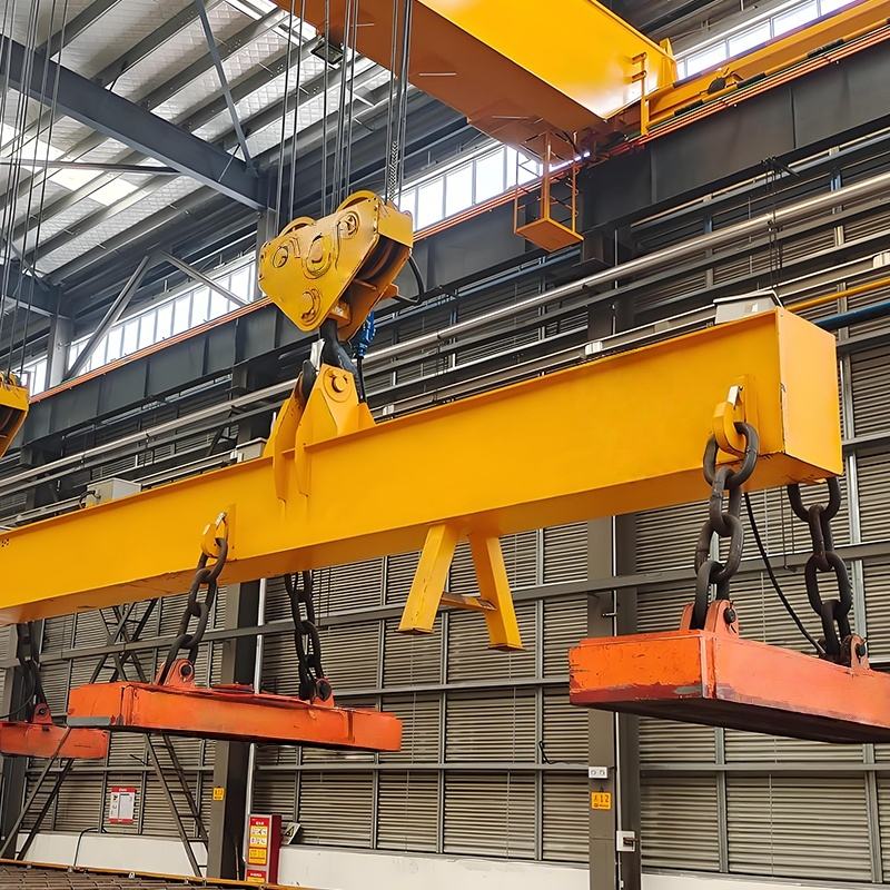 適用干冶金工廠在室內(nèi)或露天的固定跨間較繁重地裝卸及搬運(yùn)具有磁性的黑色金屬制品與材料(如鋼錠、型鋼、生鐵塊)在機(jī)械廠。庫房中也常有來搬運(yùn)鋼料、鐵塊、廢鐵、廢鋼、鐵屑等物料。