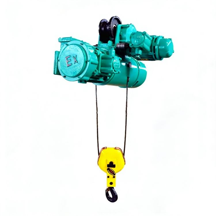 BCD 型防爆電動葫蘆:雙速鋼絲繩式,起重量 1-32t,起升高度 6-50m,工作級別 M4