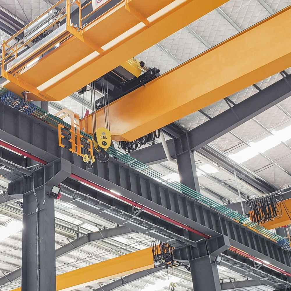 極致輕量化與緊湊化:通過(guò)優(yōu)化設(shè)計(jì)(如采用箱型主梁)和使用高強(qiáng)度材料,整機(jī)自重可比傳統(tǒng)起重機(jī)降低23%至64%。這意味著對(duì)廠房軌道梁的輪壓更小,能直接降低廠房結(jié)構(gòu)造價(jià)。