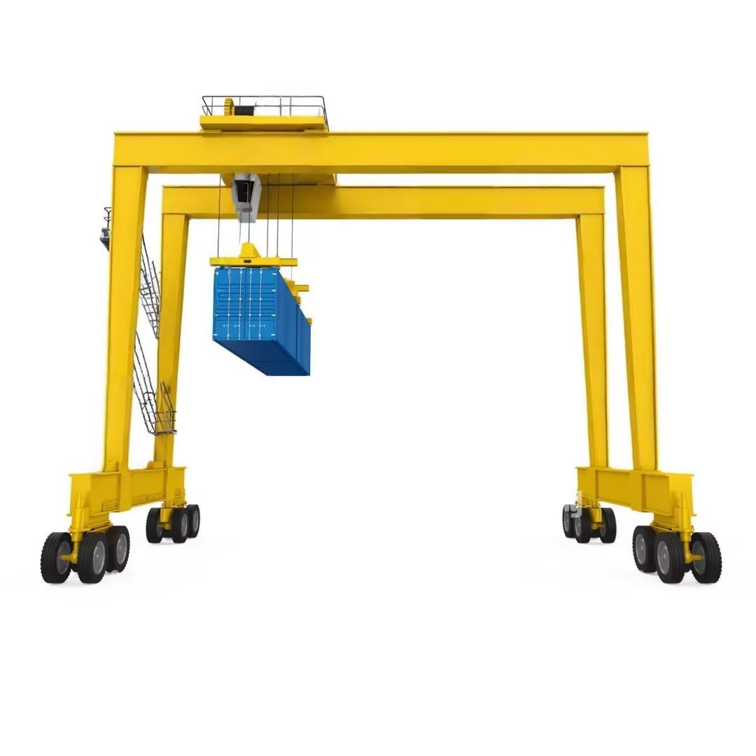 輪胎式集裝箱門式起重機(jī)(Rubber-tyred Gantry Crane,簡稱 RTG) 是一種以輪胎為行走機(jī)構(gòu)、專為集裝箱堆場作業(yè)設(shè)計(jì)的重型起重設(shè)備,主要用于集裝箱的堆垛、轉(zhuǎn)運(yùn)、裝卸車作業(yè),廣泛應(yīng)用于港口集裝箱堆場、鐵路貨運(yùn)站、內(nèi)陸集裝箱中轉(zhuǎn)站等場景,核心優(yōu)勢是機(jī)動(dòng)性強(qiáng)、場地適應(yīng)性高、無需鋪設(shè)軌道,可靈活調(diào)整作業(yè)區(qū)域。