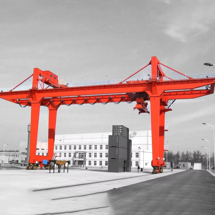 采用雙主梁箱型結(jié)構(gòu)或桁架結(jié)構(gòu),主梁跨度覆蓋 6~8 列集裝箱加 1 條車道(常規(guī)跨度 20~30m),堆垛高度可達(dá) 4~7 層集裝箱 + 底盤車高度;門架兩側(cè)設(shè)有剛性支腿,保證整機(jī)穩(wěn)定性,部分機(jī)型配備柔性支腿,適應(yīng)小范圍地面沉降。