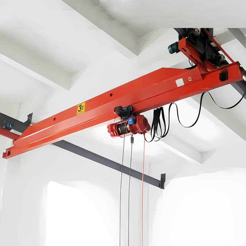 電動葫蘆沿主梁下翼緣軌道橫向移動,實現(xiàn)物料精準定位